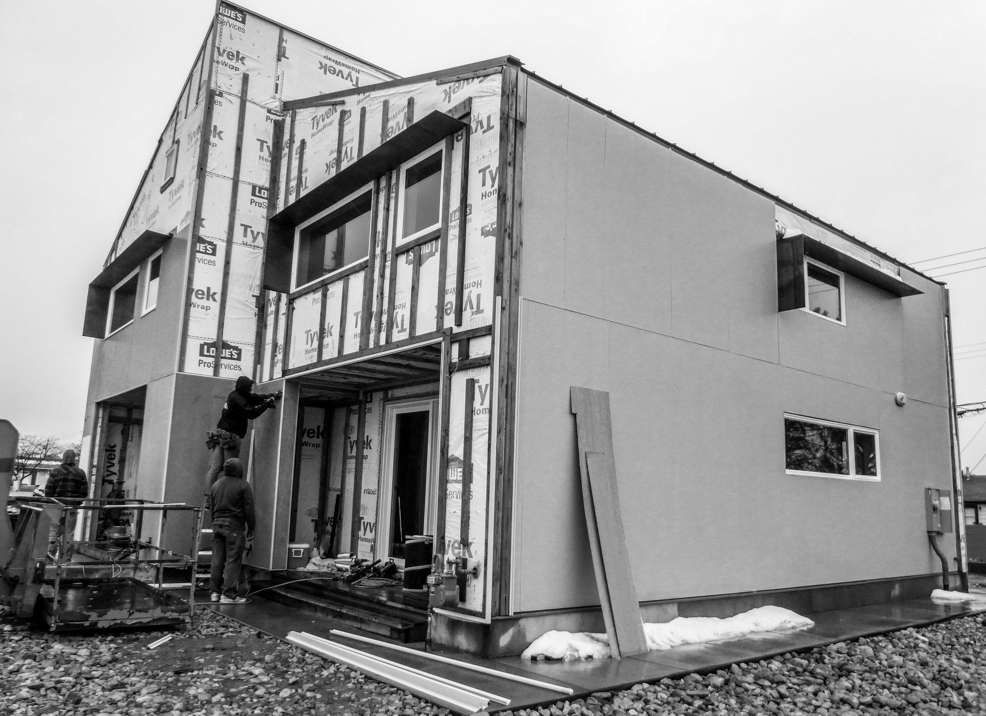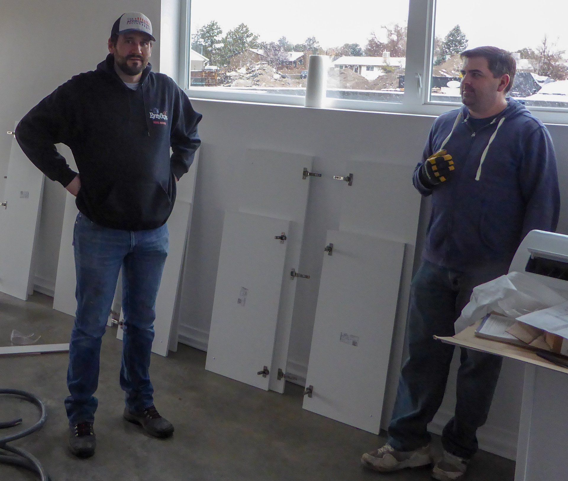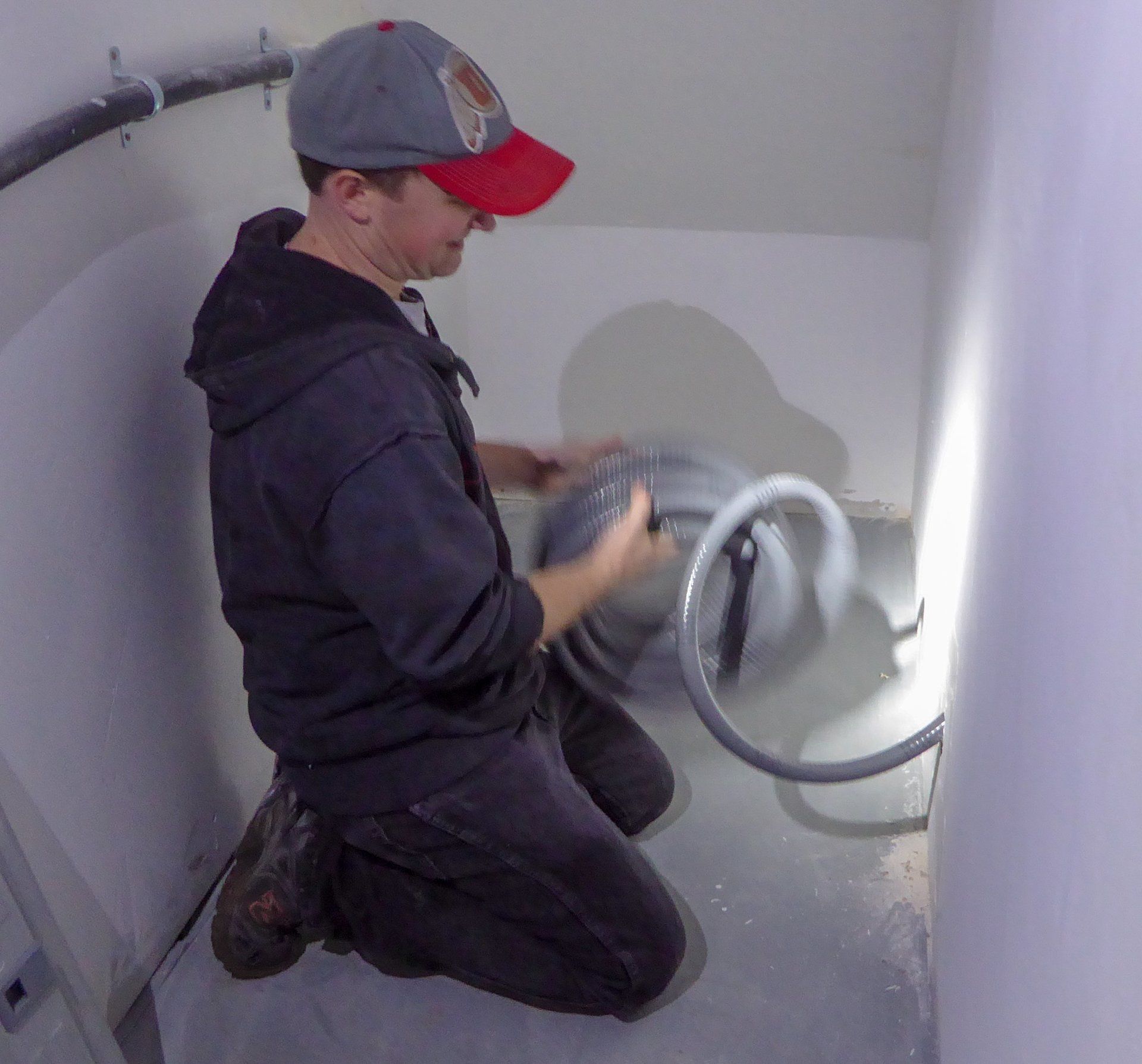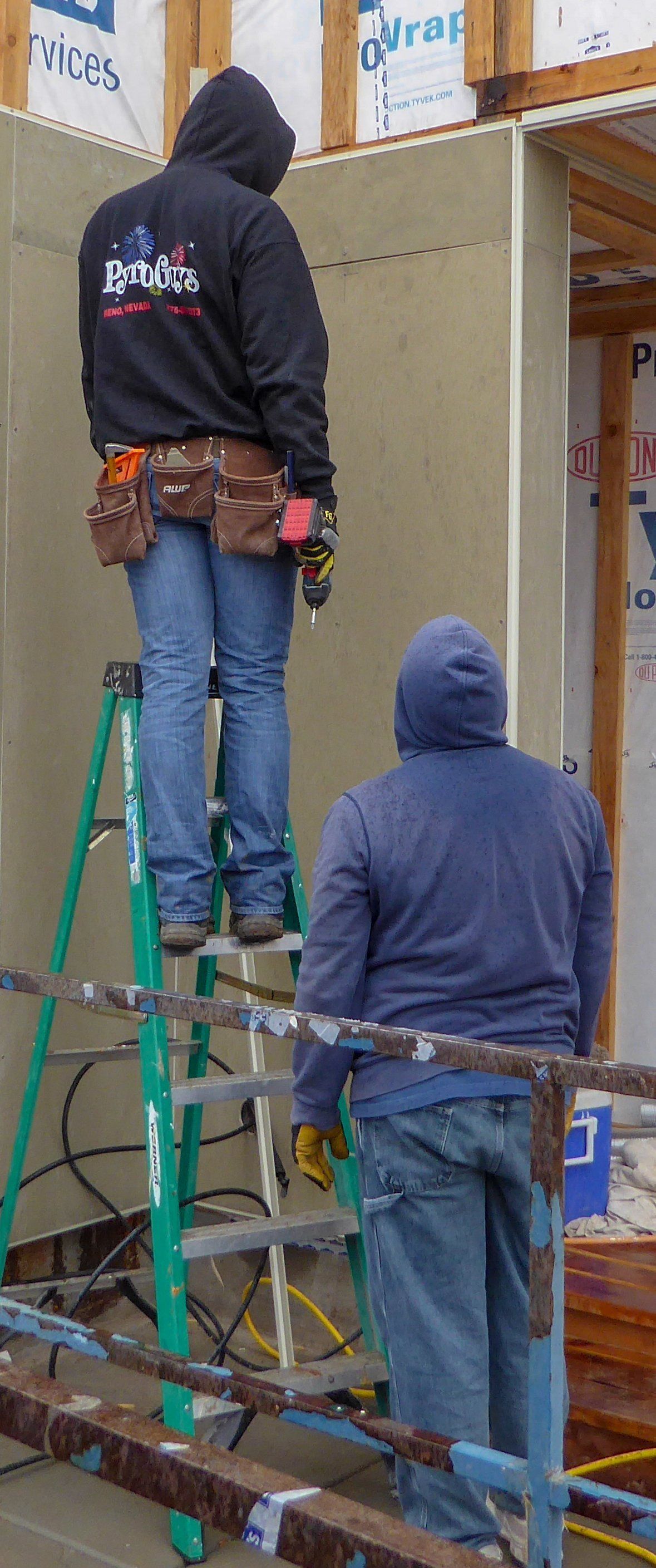 Tuesday, November 27th was a cold and wet day, the ground was extremely muddy and this made it difficult to move tools, to and from the storage container located on the other side of the property. Lucky for us, the general contractor had plenty of work to be done inside. And while he gave us the option of working on the new unit next door, most of us were just fine staying inside were it was warm. One especially nice development was the radiant floor heating was turned on, this was extremely nice and worked very well.