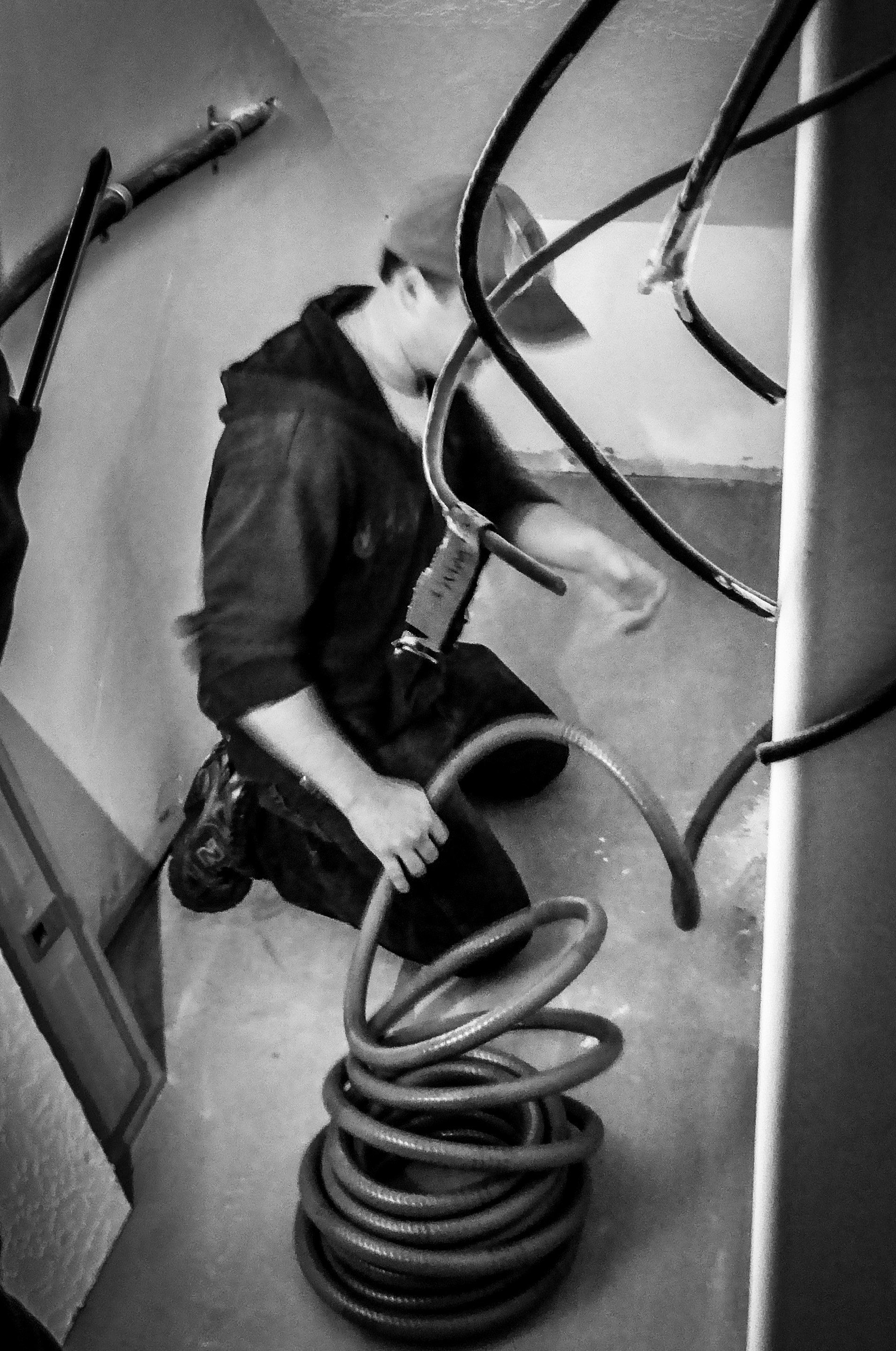 Today saw a lot of work fixing problems that had just been covered up. What I mean by this is we have seen on this project a lot of things that were never addressed or finished, this could be because the contractor felt rushed to meet deadlines or maybe items were just overlooked. This led to some difficult repairs. Today’s fix was a drain pipe for a mini split that was never installed (keep in mind that this is a new building). In order to fix this, we started by pulling out the storage cabinets in the living room. These are large full height cabinets that sit underneath a soffit, on the face of the soffit sits the mini split. Once the cabinets were removed, we had to cut into the finished sheet rock and drill holes though the stud wall. Drilling though the studs was especially difficult seeing as we did not have appreciate drill bits, luckily, we were able to find a new set of hole saws that belonged to the general contractor.