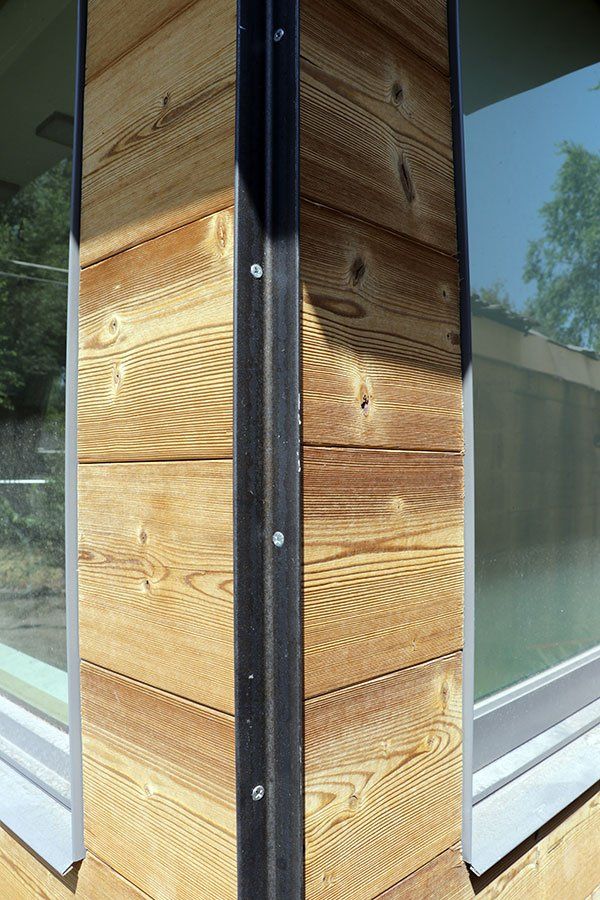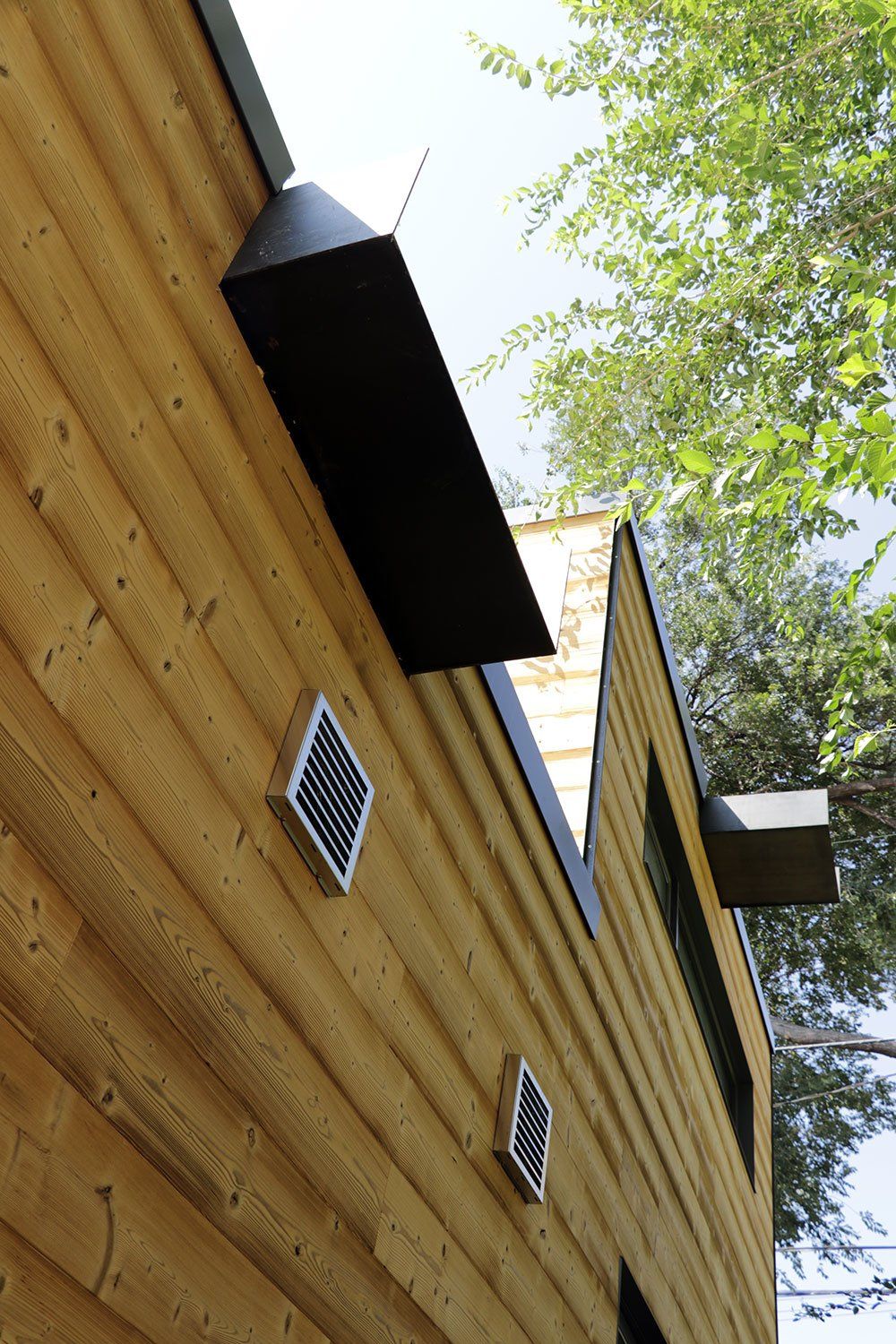 The concrete floor is exposed to the winter sun for additional solar heat gain during the cold months of the year.