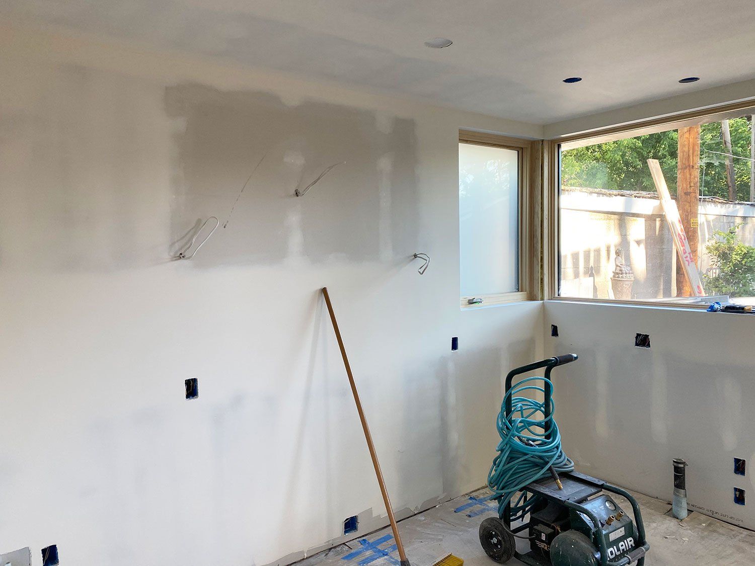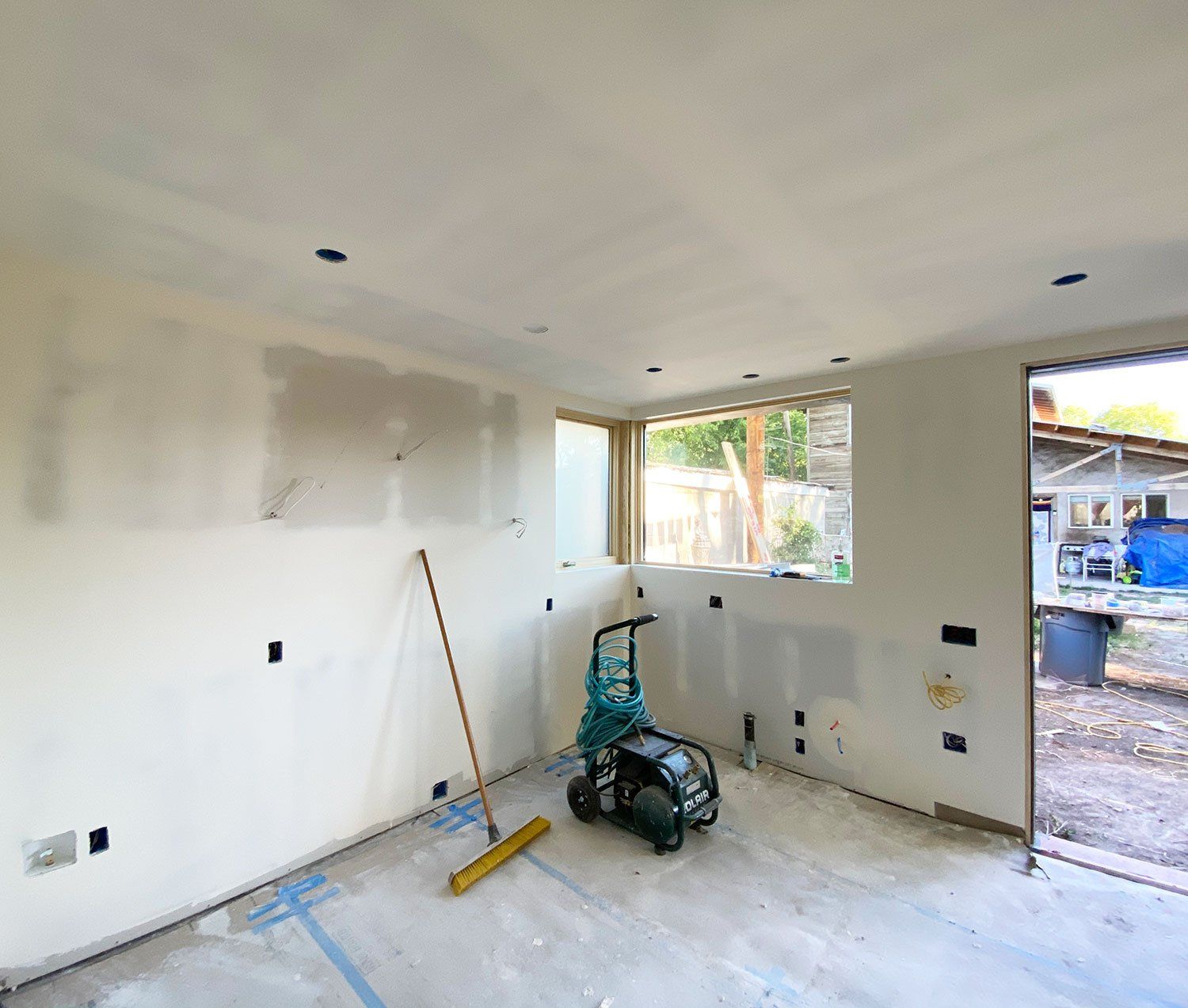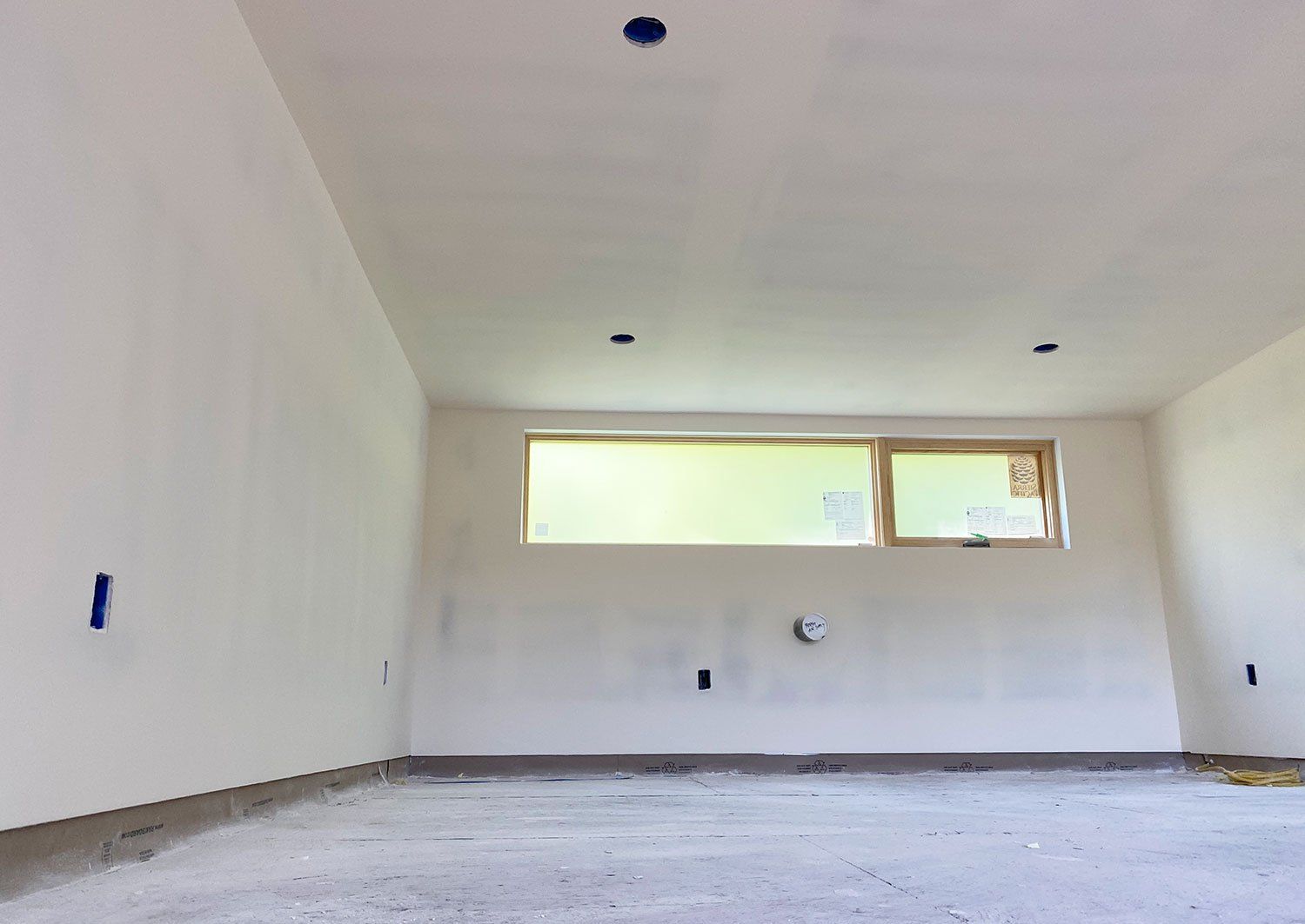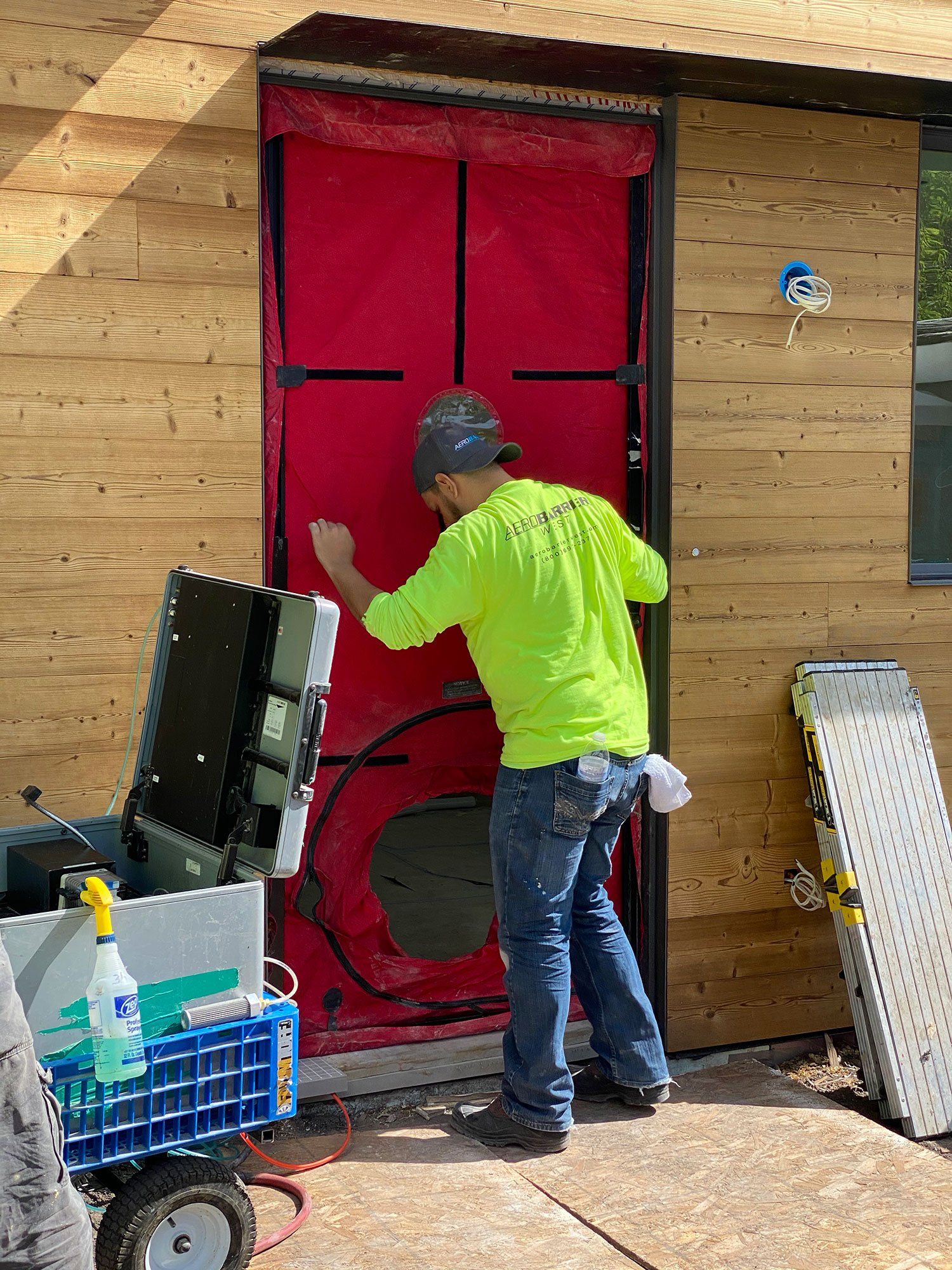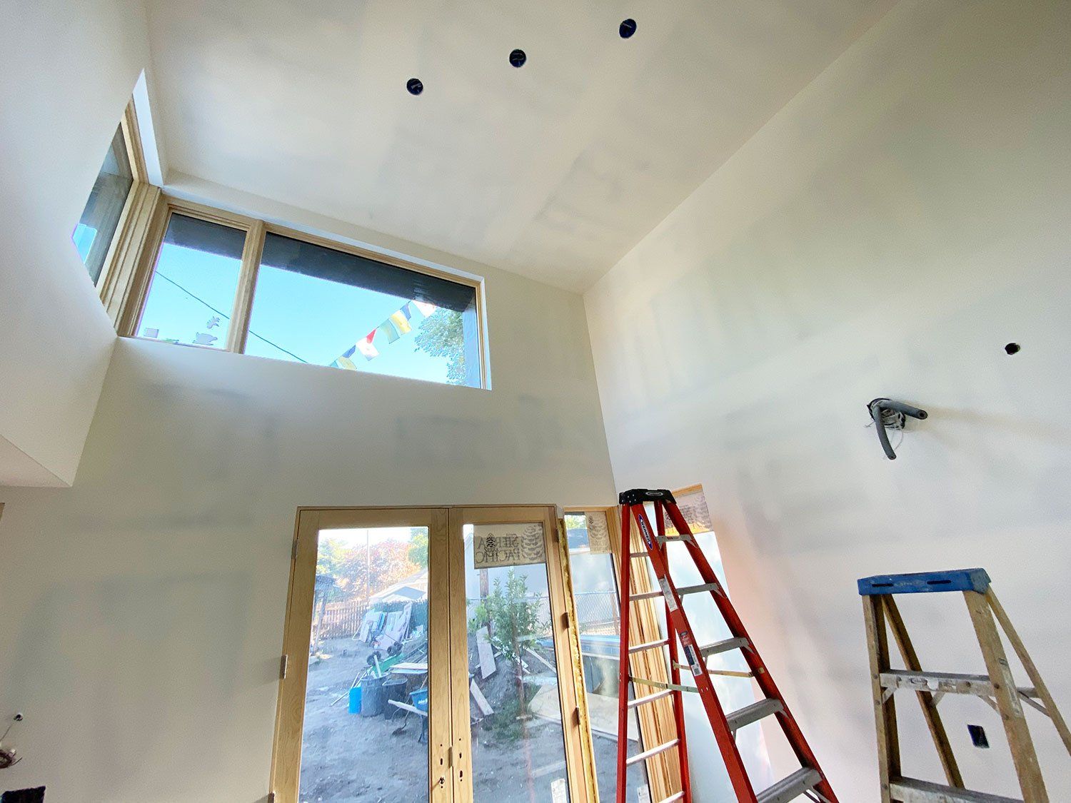 After the drywall was installed, sanded and mudded, the Kunga ADU was tested for its air infiltration performance, and the Aero Barrier was installed, elevating the air tightness to Passive House standards.
