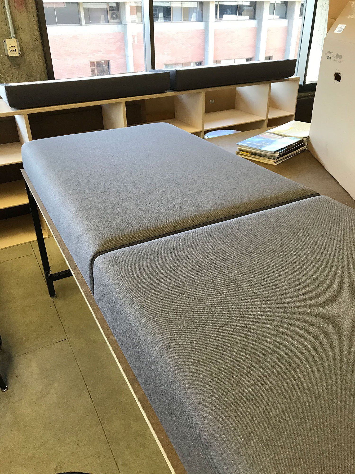 The nature of our project calls for a non-linear approach to building. To work around our waiting for the permit, we get creative with the approach and it is working out great! We have progress going on all aspects of the project from the construction of the building itself to the fabrication of the furniture and metal shading. As the needs arise, we shift our numbers to different tasks, but overall things are progressing rapidly. This week we saw a completion on our wall panel construction! They are all in place now and we can finally see the full effect of our building and its fantastic double-height space.
